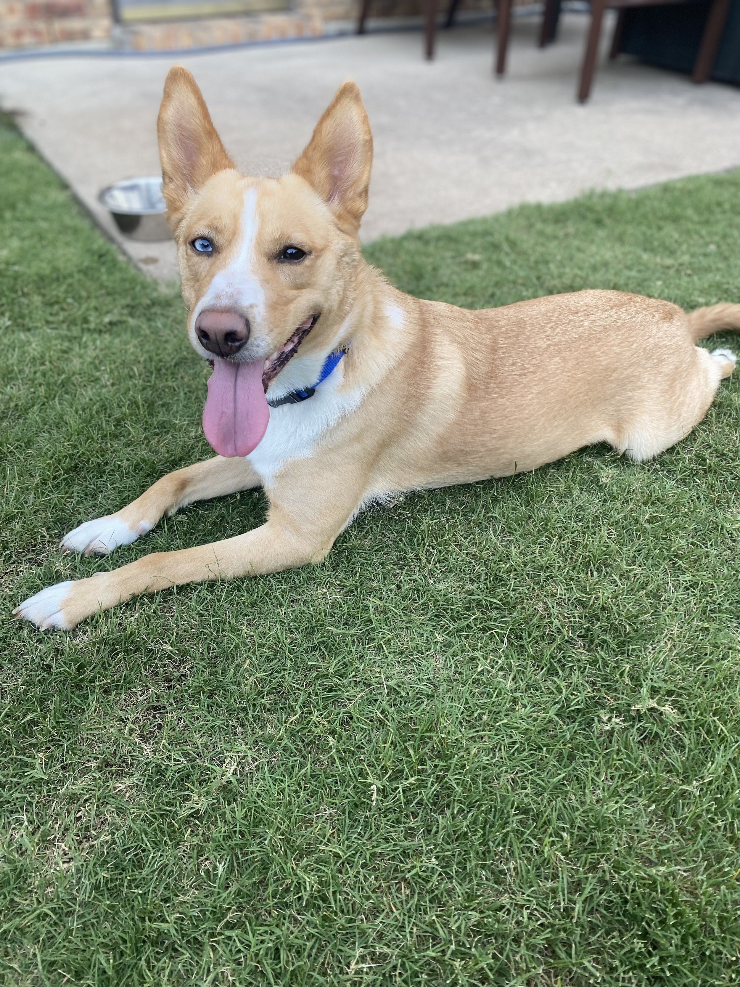 Sage is a husky-German Shepard mix who loves to play with her favorite stuffed pig, snack on ice cube treats, and go on walks. She was rescued in 2020 after being abandoned in an alley in Houston, Texas after her previous owners left her behind. Sage now enjoys a life of luxury in Frisco with unlimited belly rubs and cuddles.