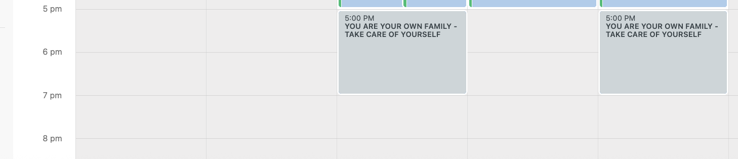 Finally, schedule “stop working, you are your own family” on your calendar when you need to stop working. Just like you’d protect a family dinner or a client session, protect the space where you stop being a therapist and get to be a person again.